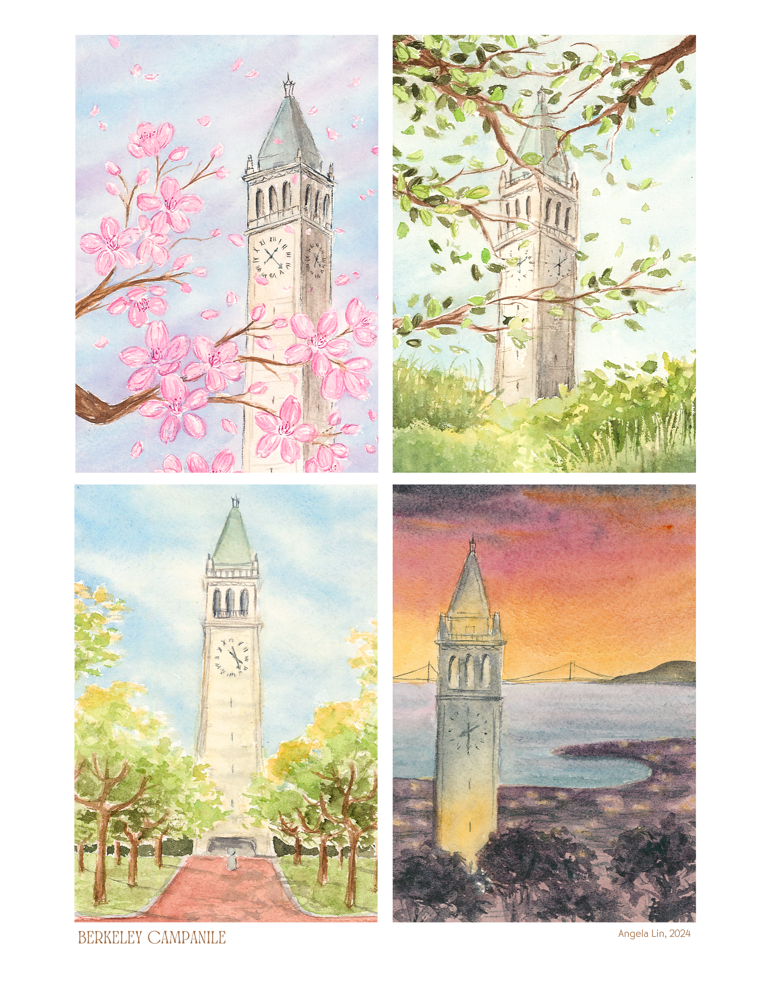 I am a watercolor artist based in San Francisco, California. My work captures memories from the places I’ve lived and traveled to — you’ll find scenes from my hometown Davis, my college town Berkeley, and my current home, San Francisco.